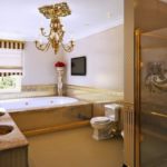Le bidet, les toilettes et la cuvette doivent provenir de la même collection de luxe. Les robinets, mélangeurs sont dorés ou argentés (mats). Les options bonnes mais chères seront le bronze.