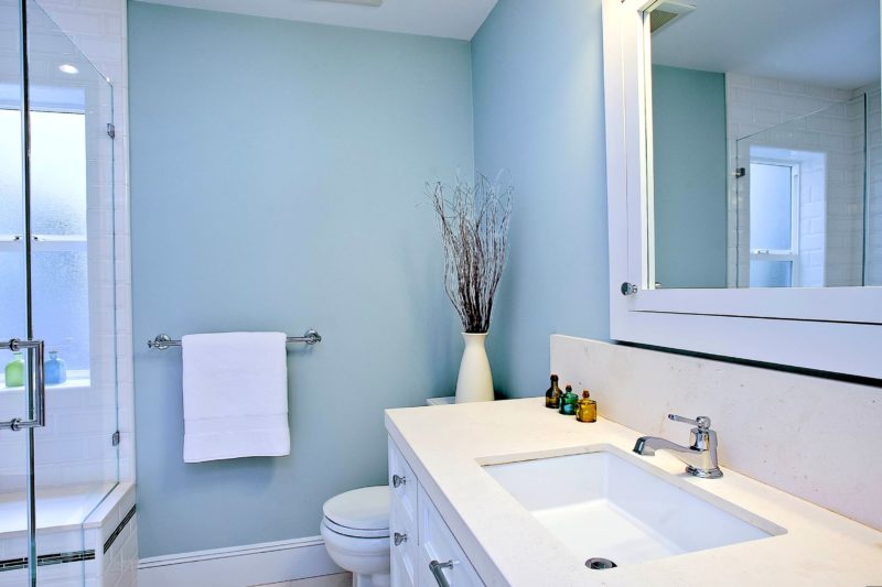L'utilisation de la peinture est le moyen le plus économique et le plus simple de changer l'intérieur d'une salle de bain. Cette méthode de décoration est une option appropriée pour les chambres décorées dans le style scandinave, loft ou Provence.