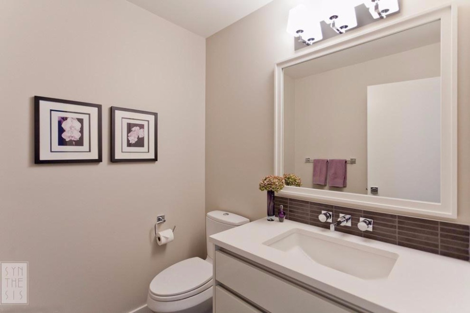 Panneaux en verre grand format à l'intérieur d'une salle de bain de style moderne