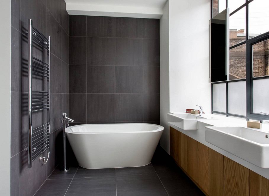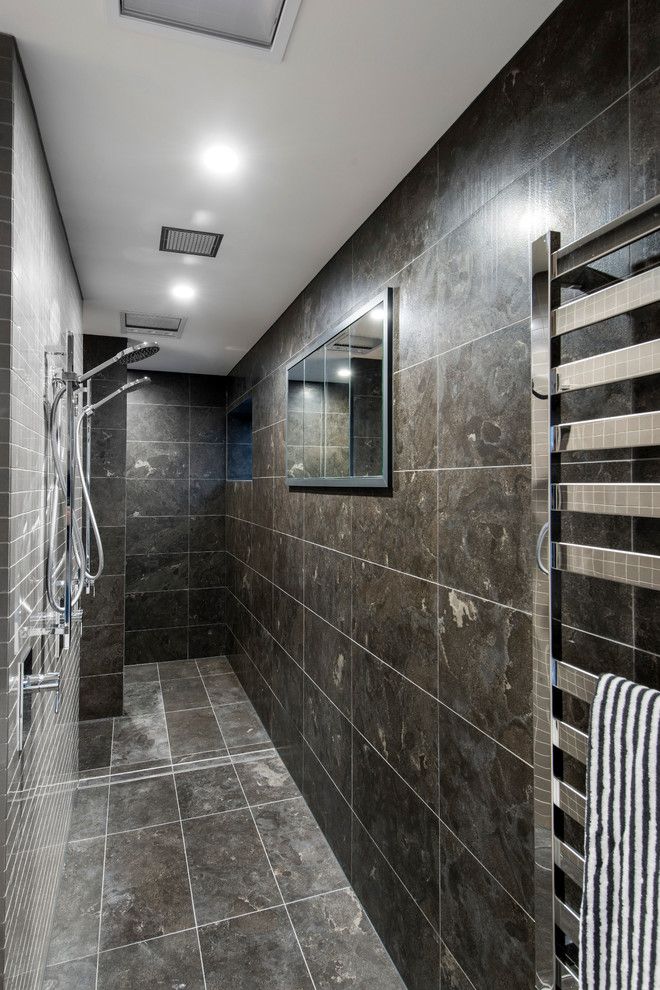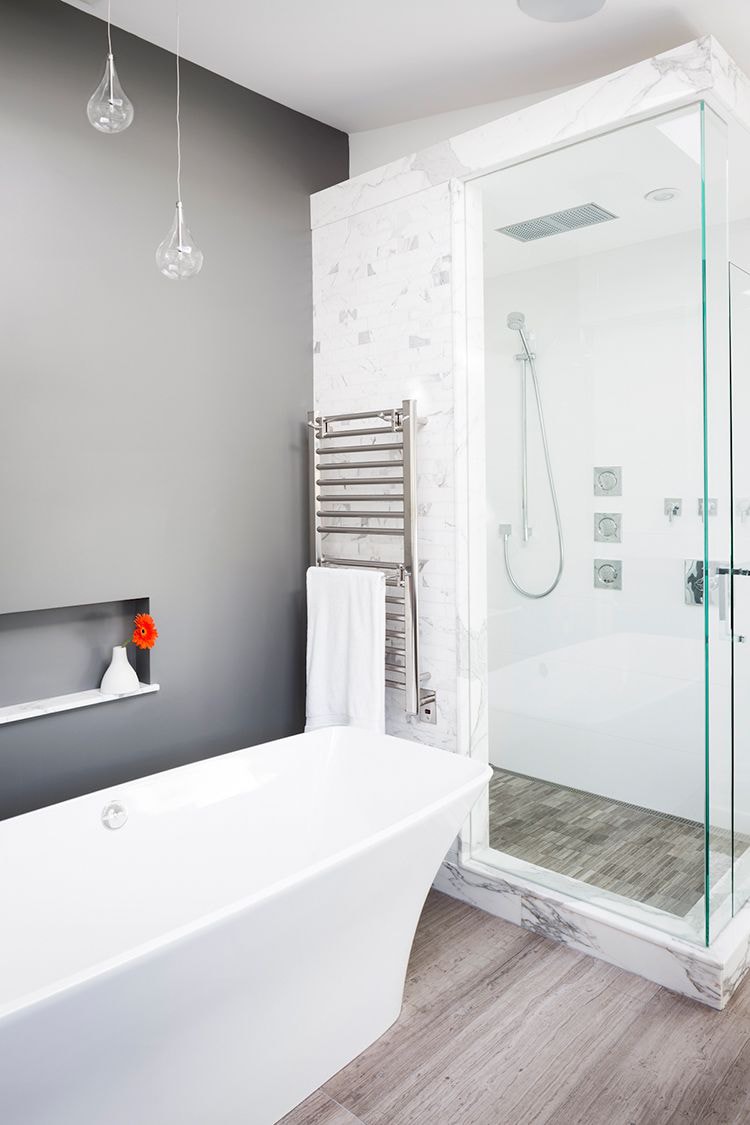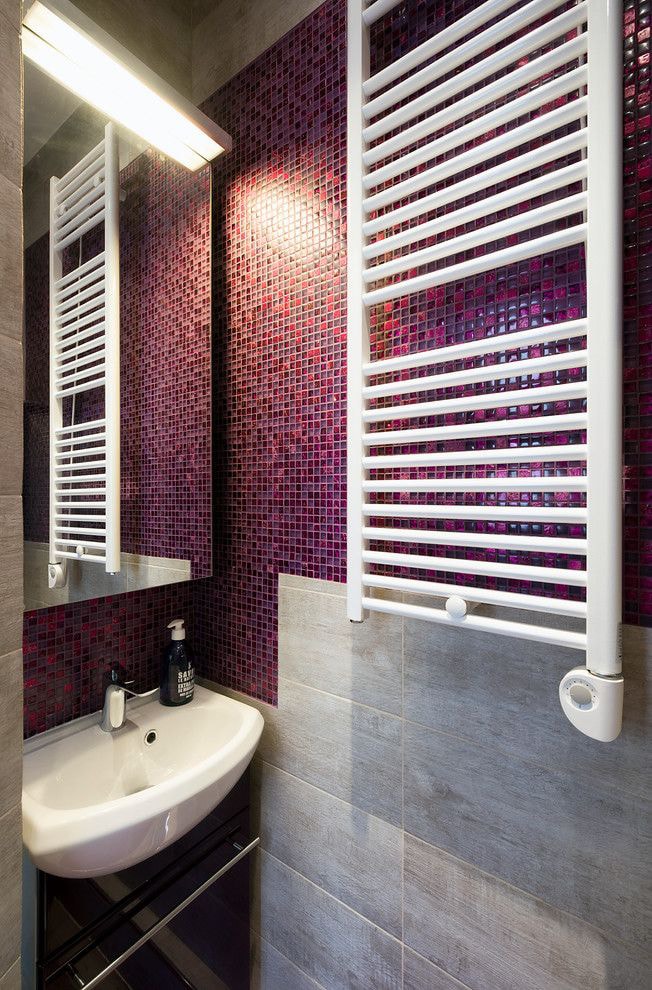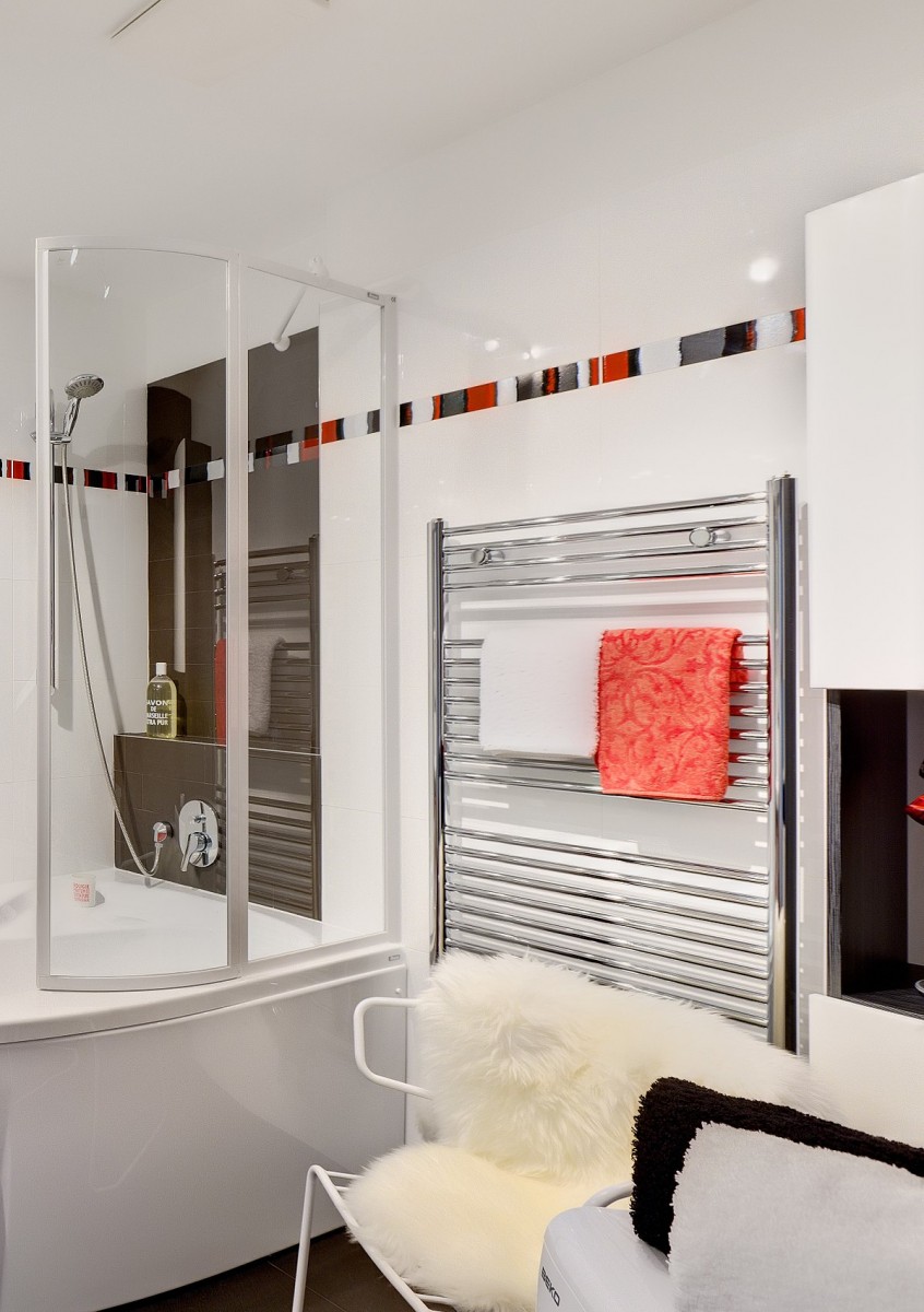 Salle de bain contemporaine avec sèche-serviettes