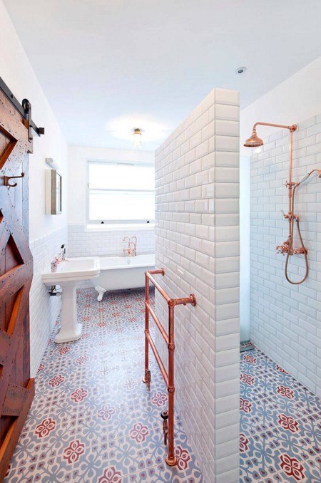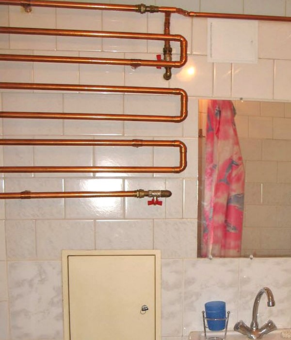 Les tuyaux en cuivre bien placés peuvent servir de sèche-serviettes