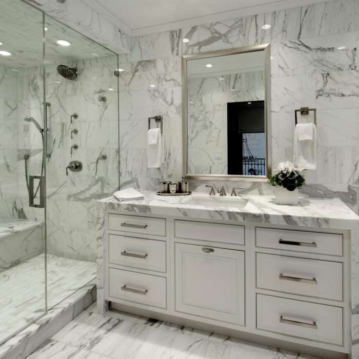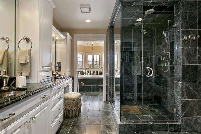 Le marbre et le granit sont également assez courants. C'est gracieux et cher. matériauxet ils donneront à la salle de bain les mêmes propriétés: elle aura l'air luxueuse.