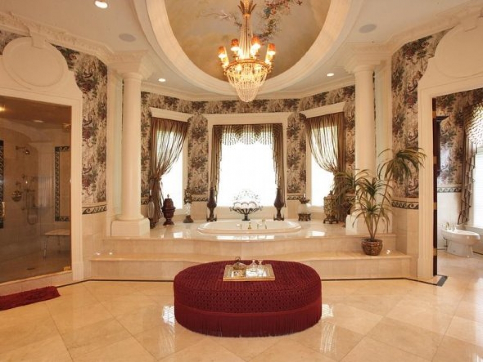 Un autre aspect important est l'éclairage. Dans une salle de bain spacieuse, un éclairage de base ou ponctuel ne suffit pas. Cette pièce nécessite un bon éclairage abondant, pensé dans les moindres détails. Assurez-vous de placer plusieurs lampes fluorescentes ou lampes à diode au-dessus du miroir. Il existe également des cadres avec des lumières intégrées - une option très pratique. N'oubliez pas la lumière principale, elles peuvent servir de lustre au centre de la pièce ou de lampes à diode autour du périmètre.