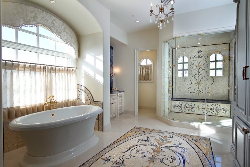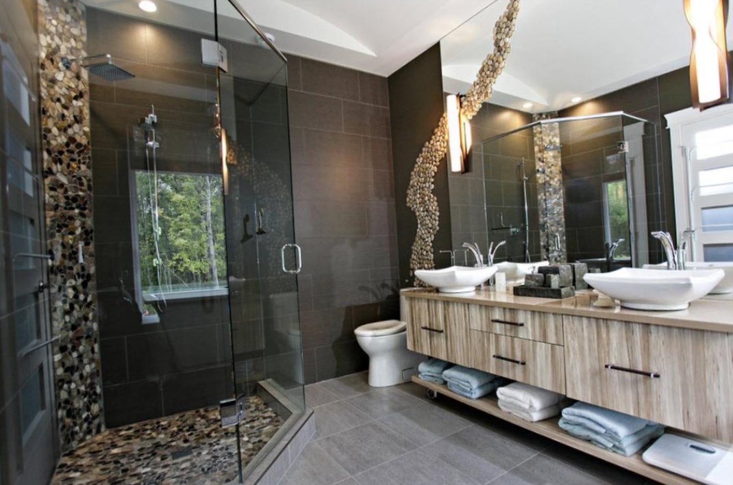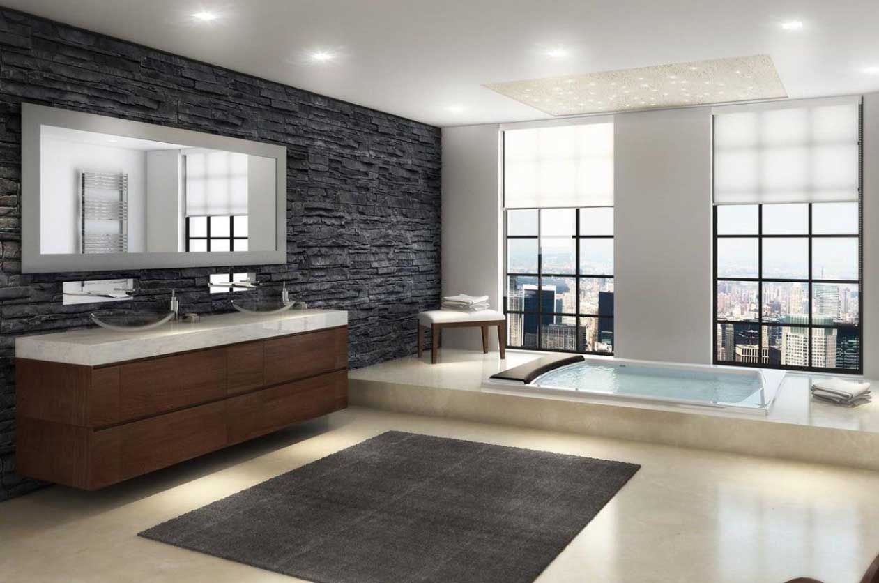 Combinez ce matériau avec d'autres et vous obtiendrez un design grand et élégant pour une grande salle de bain.