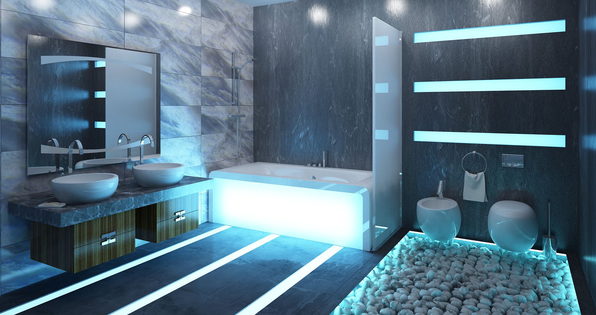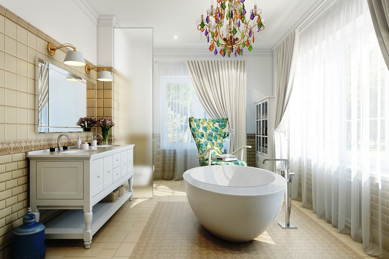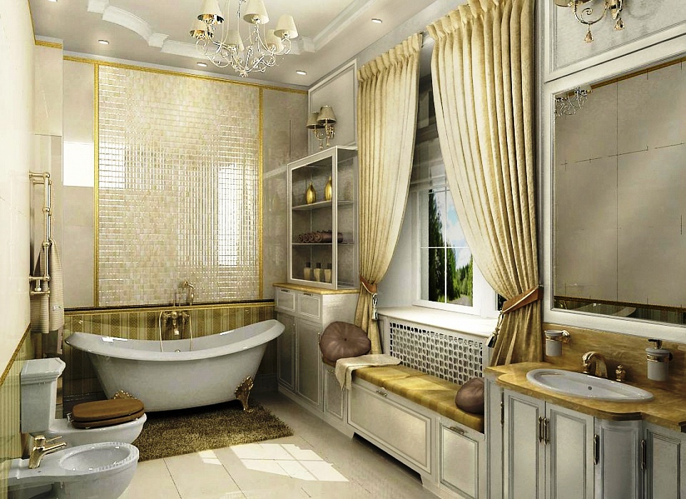 Voici les principaux points forts techniques de l'intérieur d'une grande salle de bain. Nous passons au design.