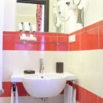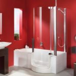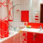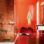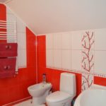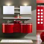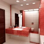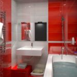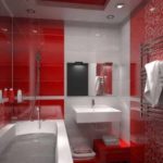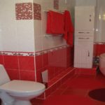 Le design de la salle de bain et le design global de l'appartement doivent correspondre et se compléter, sinon vous risquez d'en faire trop et il y aura trop de couleurs. La combinaison correcte et harmonieuse de rouge dans la salle de bain sera la touche finale dans la conception globale de votre maison: