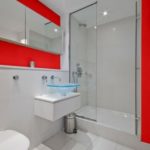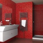 Minimalisme - Le style moderne du design de la salle de bain en rouge comme sur la photo. Cette combinaison de pas plus de deux couleurs et de conservatisme dans la plomberie et les meubles sans détails supplémentaires dans une lumière vive. En règle générale, en deux couleurs - rouge et noir, avec la couleur blanche principale sans détails supplémentaires à l'intérieur. Un tel intérieur est préféré par des gens occupés qui ne consacrent pas beaucoup d'importance et de temps à l'adoption de procédures d'eau, mais qui aiment les idées originales.