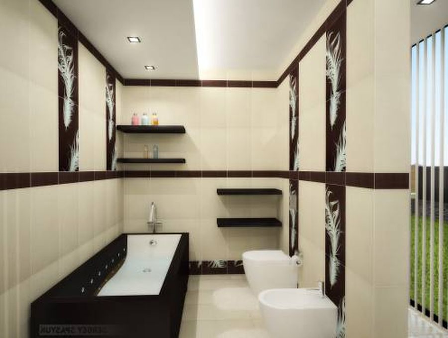 Les plafonds de la salle de bain sont recommandés pour être décorés dans une couleur commune avec les murs.