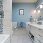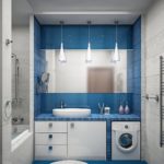De plus, la couleur bleue ne se démode jamais. Il fait froid en soi, il serait donc préférable d'y ajouter des couleurs dorées ou oranges à l'intérieur. Une salle de bain dans des tons bleu clair et bleu apparaîtra plus spacieuse.