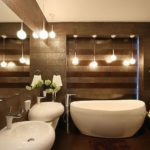 - Considérez le nombre d'appareils d'éclairage dans la zone de la salle de bain elle-même et près du lavabo avec un miroir.