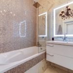 Si vous combinez les trois options à l'intérieur de la salle de bain, ce sera la solution parfaite. Lors du choix d'une conception d'éclairage, concentrez-vous sur le style général de l'intérieur. Si la pièce est décorée dans un style moderne, par exemple dans le minimalisme, alors les lampes faites avec l'effet métallique sont superbes. Eh bien, si vous choisissez un intérieur classique, les lustres et les appliques auront fière allure.