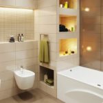 - Si possible, essayez de faire attention aux modèles modernes de baignoires et de toilettes. Les toilettes murales les plus populaires sont maintenant. Ils économisent de l'espace et sont très ergonomiques. Ils ont également une résistance élevée et résistent à des charges allant jusqu'à 300 kg.