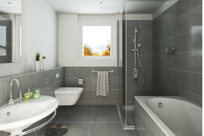 - Disposition d'une petite, moyenne et grande salle de bain dans une maison privée
