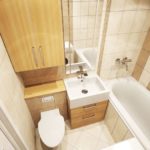 Si vous combinez les toilettes avec la salle de bain dans un petit appartement, il y aura de nombreuses nouvelles opportunités pour équiper la pièce. Libérez beaucoup plus d'espace. Dans ce cas, il peut être utilisé pour installer une machine à laver. Il peut être intégré dans la commode sous l'évier, dans le placard à linge. D'autres idées peuvent être soulignées sur la photo, qui montre l'aménagement combiné de la salle de bains de 6 m² avec une machine à laver.