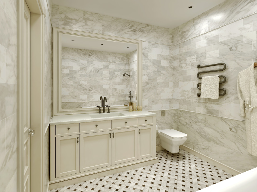 Revêtement mural en marbre blanc pour une salle de bain de style classique