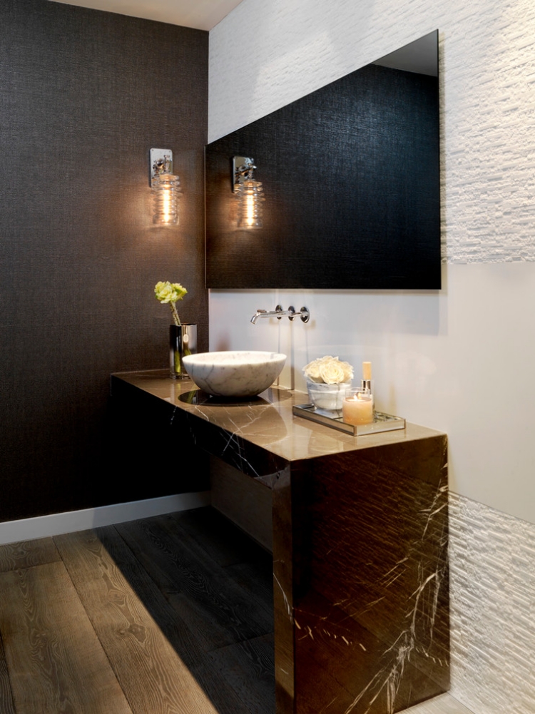 - À quoi ressemble le bois et le marbre dans la salle de bain