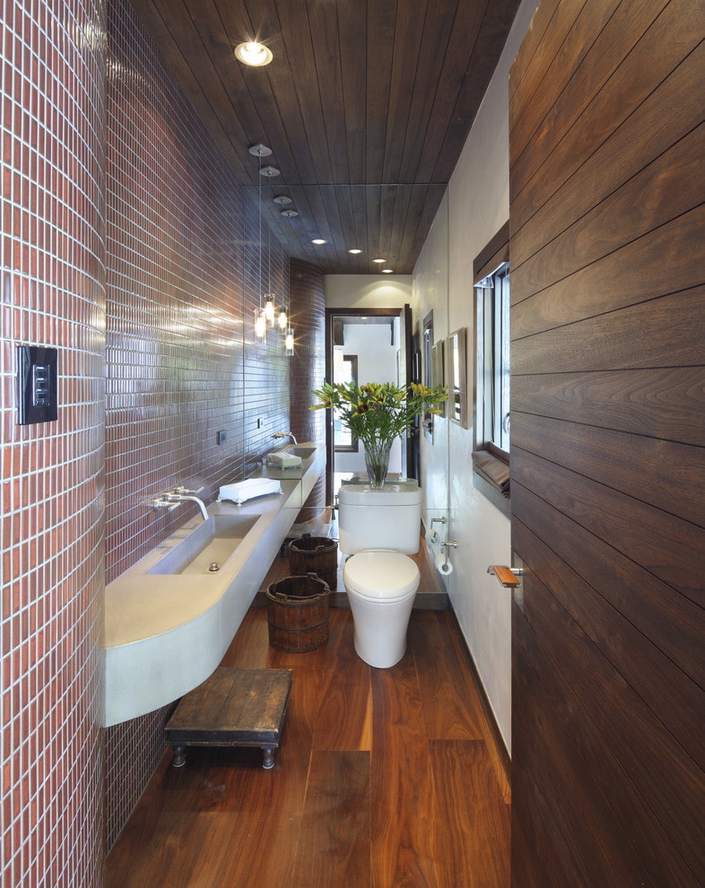 Le plafond peut rendre l'intérieur des toilettes plus attrayant et confortable.