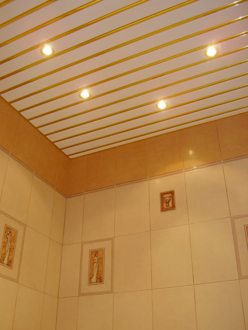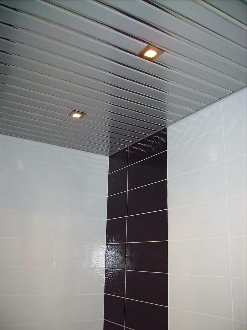 Les plafonds à lattes peuvent être en plastique, mais le métal est principalement utilisé pour la production: aluminium ou acier galvanisé. Ils sont faciles à assembler et, si nécessaire, les travaux de réparation sont tout aussi faciles à démonter.