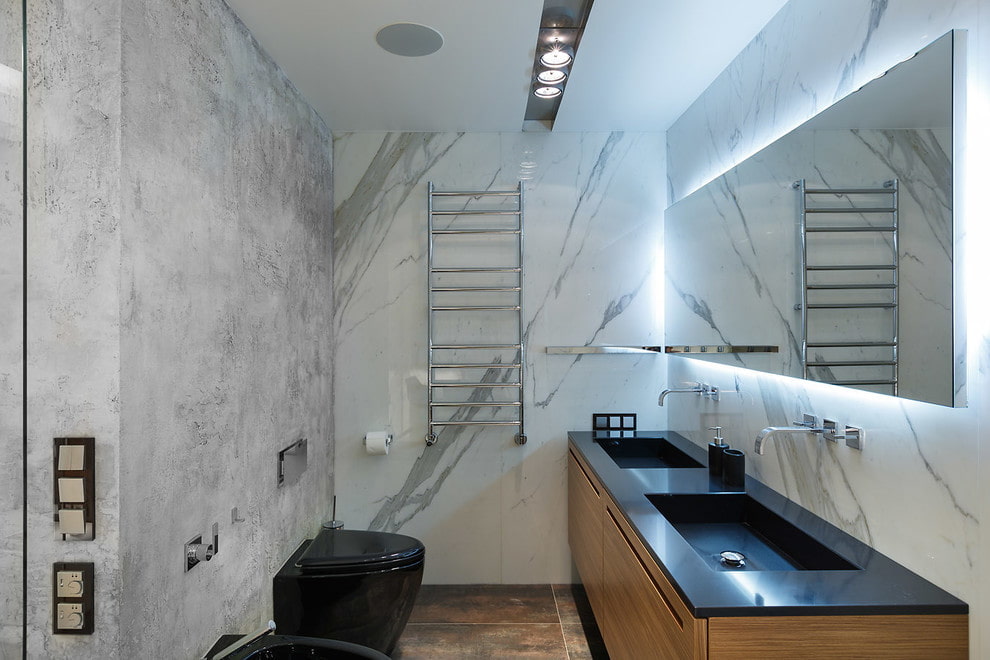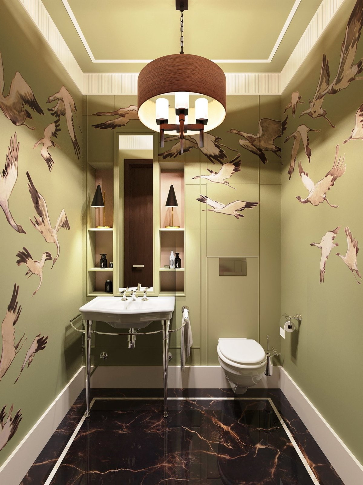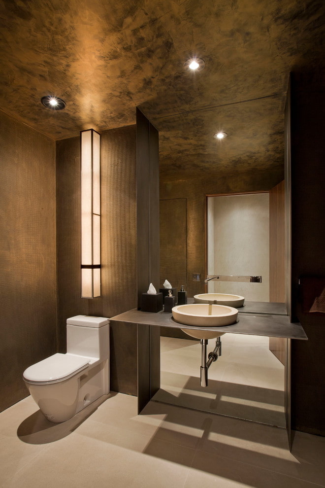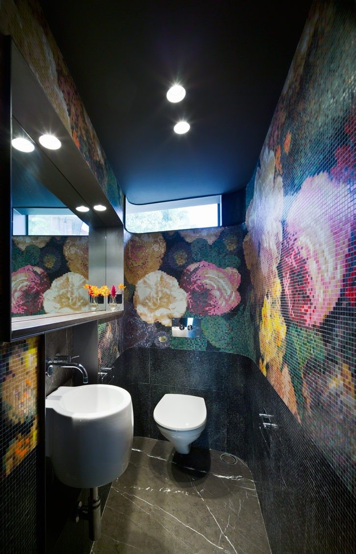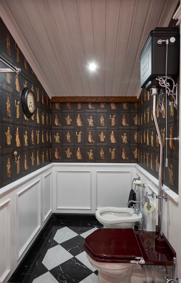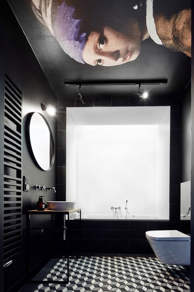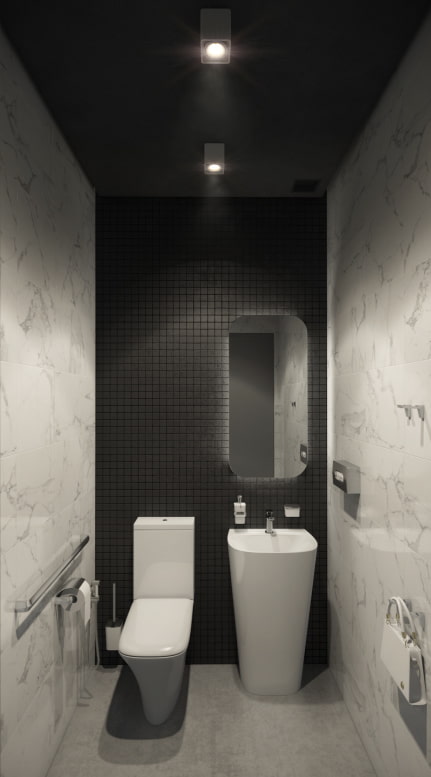 L'utilisation du noir pour le plafond des toilettes ne peut être justifiée que lorsque le style sélectionné de l'intérieur l'exige.