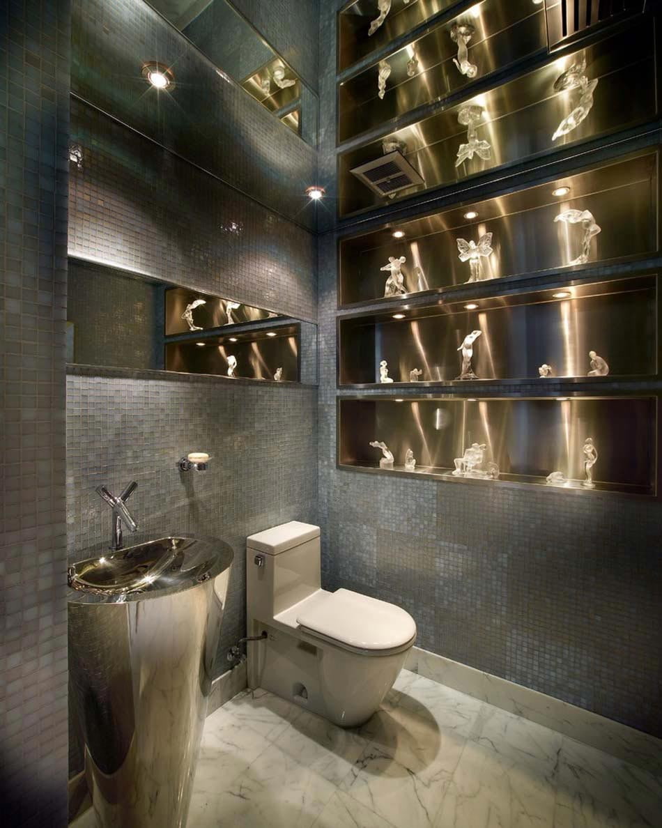 Les projecteurs intégrés s'intègrent parfaitement à l'intérieur des toilettes, dont la quantité devrait fournir le niveau d'éclairage souhaité