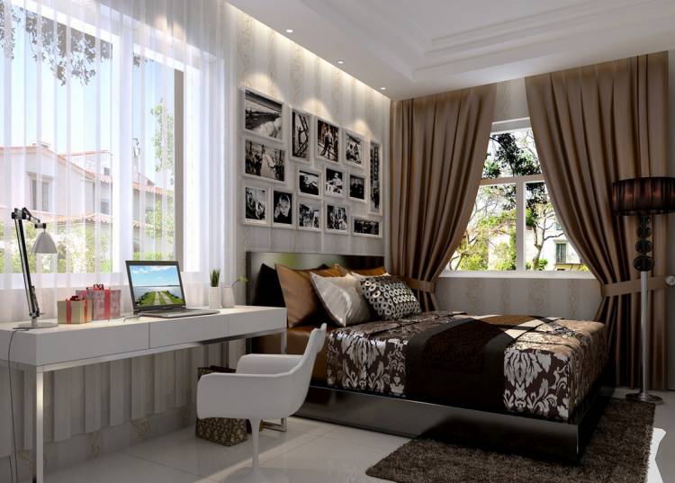 Faites attention! Vous pouvez toujours utiliser des rideaux luxueux pour cacher la lumière inutile. Mais il vaut mieux penser à un design intéressant qui s'adaptera aux fenêtres comme élément de décoration. Lors de la conception d'une conception de pièce, la première chose à considérer est la disposition des fenêtres. Pour rendre la pièce plus spacieuse, vous pouvez choisir un emplacement panoramique des ouvertures. Assurez-vous de considérer l'emplacement des chambres. Les fenêtres peuvent être situées en face ou à côté, selon vos préférences.