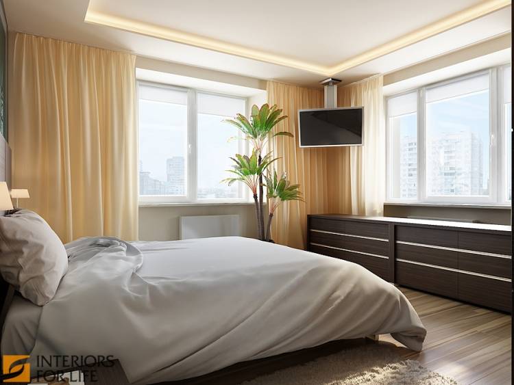 Une chambre avec trois fenêtres, dont le design peut être vu sur Internet, est également une excellente idée de design.
