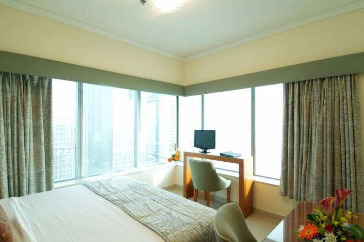Le niveau de lumière naturelle est régulé par des rideaux et des rideaux.