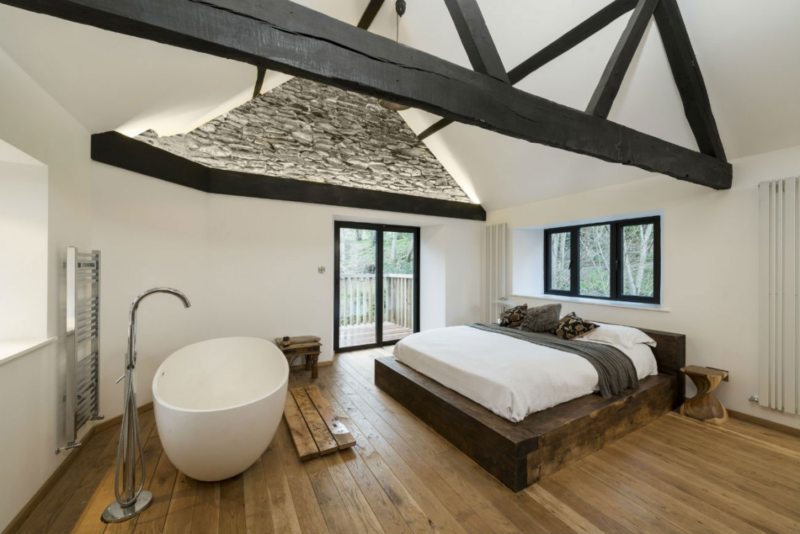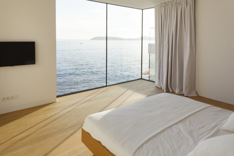 - Dans une telle pièce, il y aura toujours beaucoup de lumière naturelle. Par conséquent, il peut y avoir des inconvénients pendant le repos et le sommeil. Il sera nécessaire de recouvrir le verre d'un revêtement spécial et de mettre des stores ou des rideaux occultants sur les fenêtres.