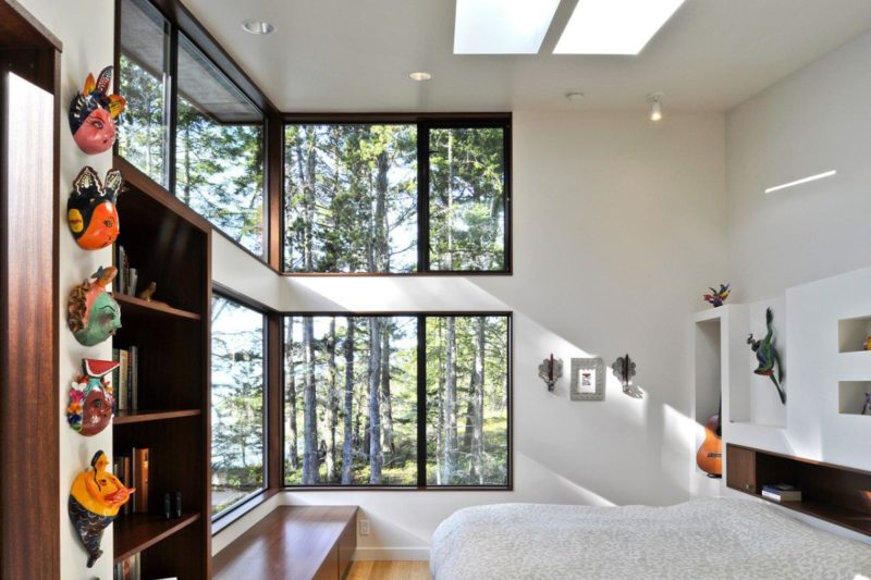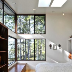 - De grandes fenêtres vous permettent de profiter de tous les bienfaits naturels. Dans le même temps, gardez à l'esprit que les maisons des voisins ne sont pas visibles à proximité, ce qui peut gâcher la vue.