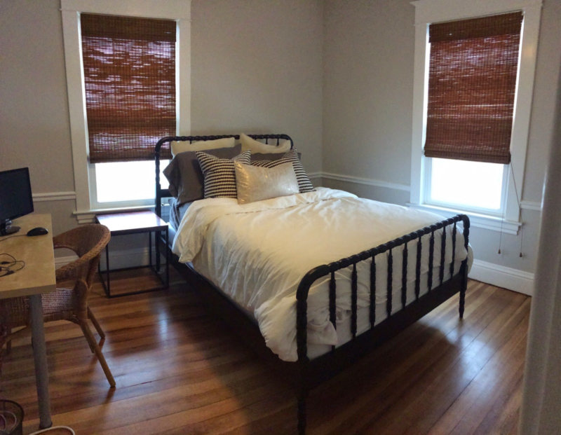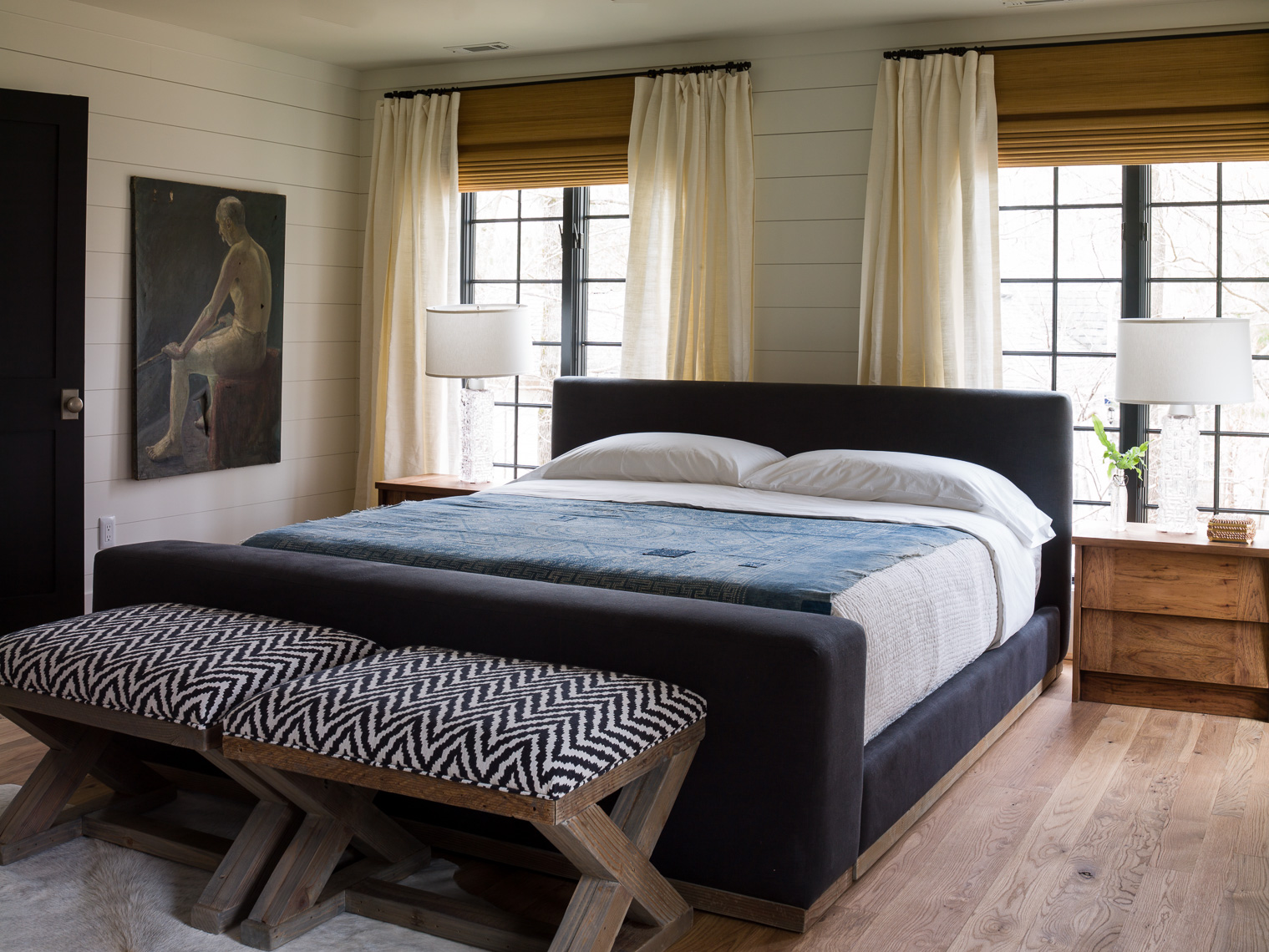 Décoration de chambre à coucher avec deux fenêtres de styles différents