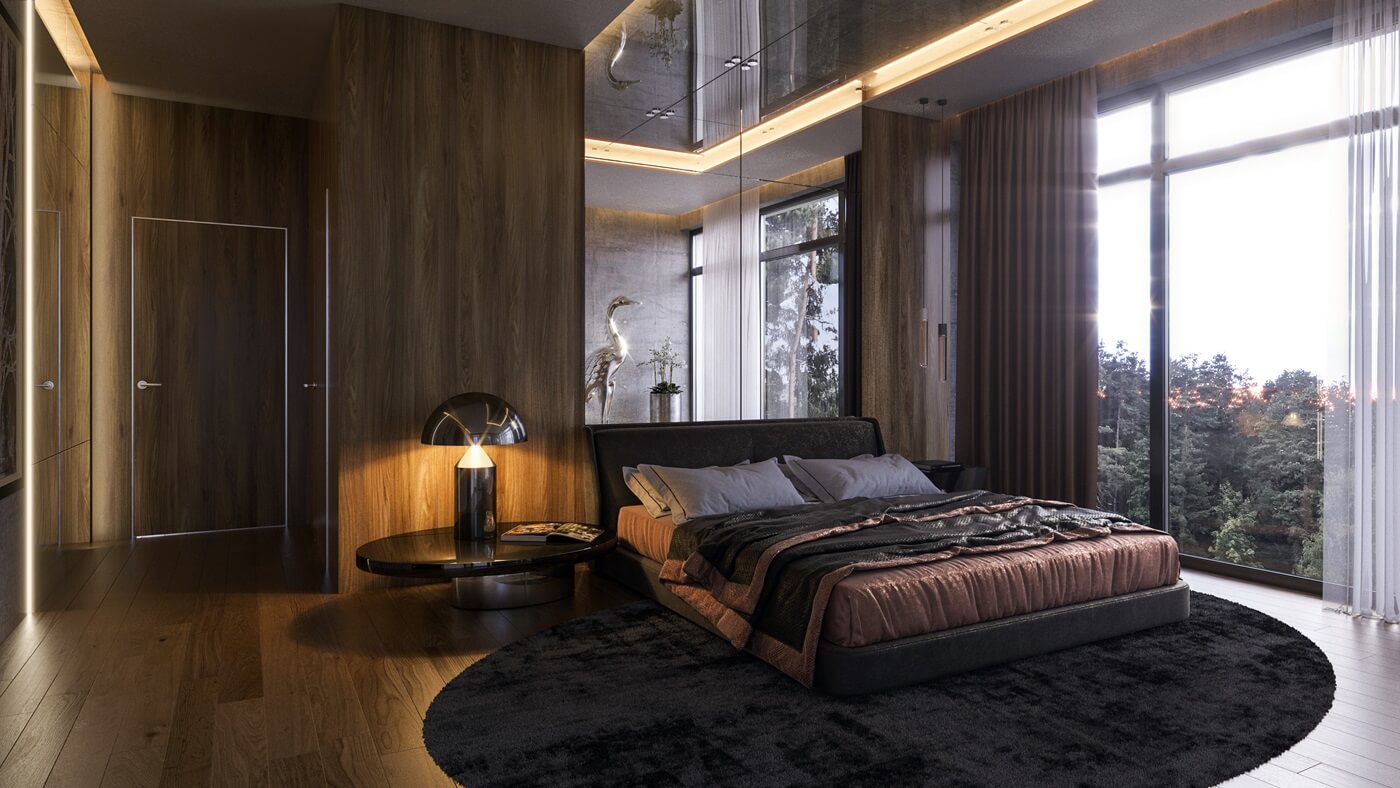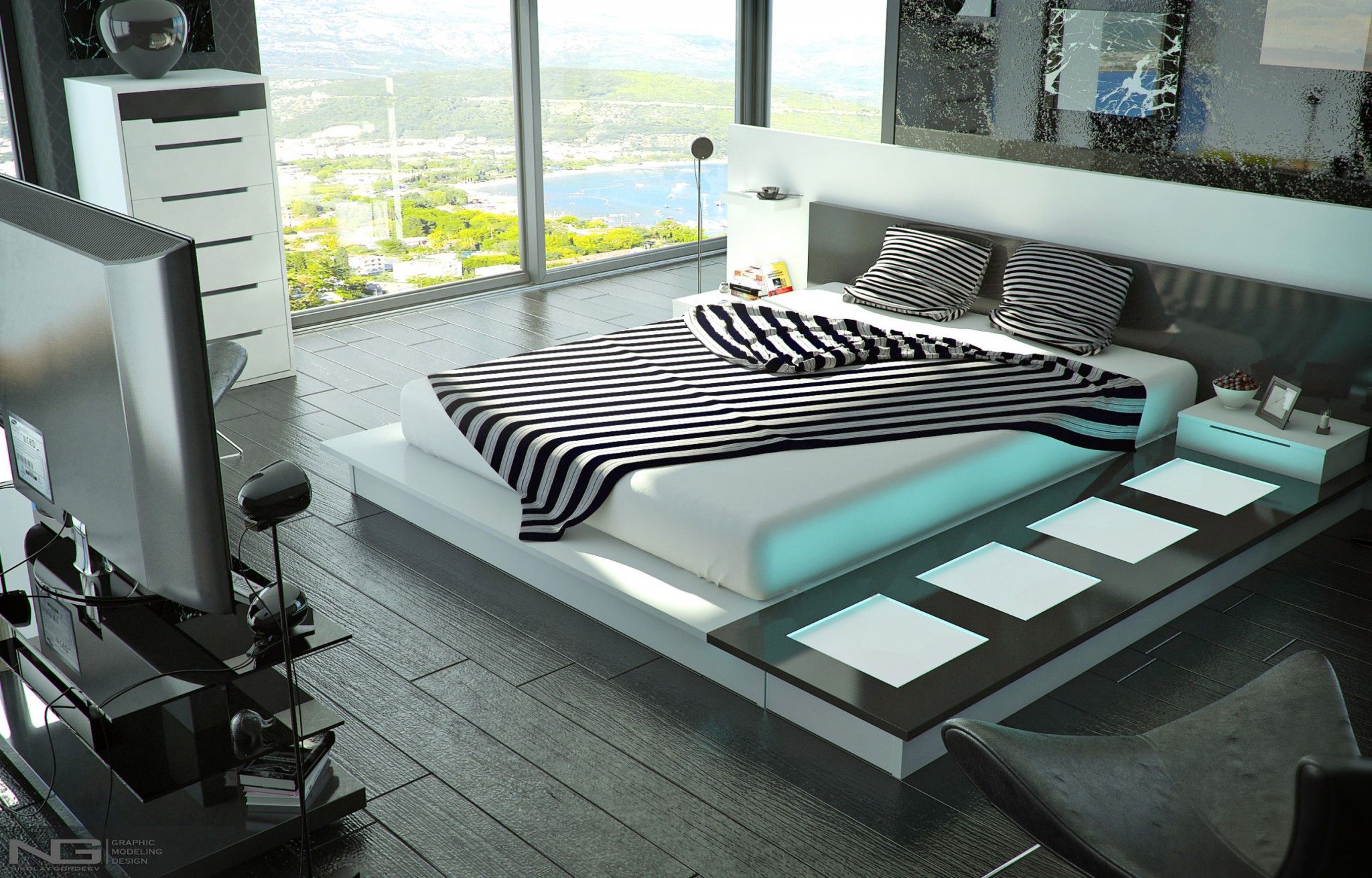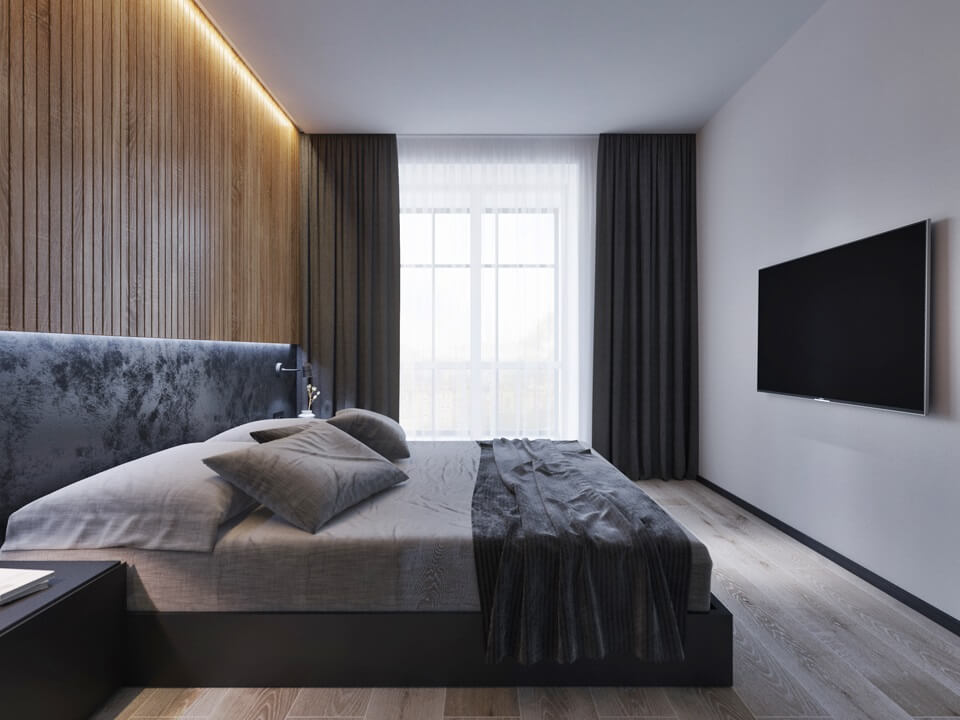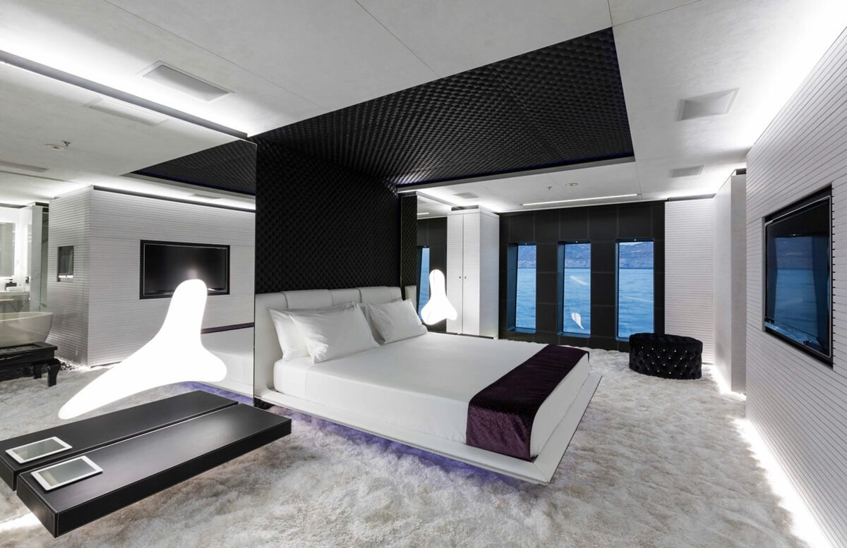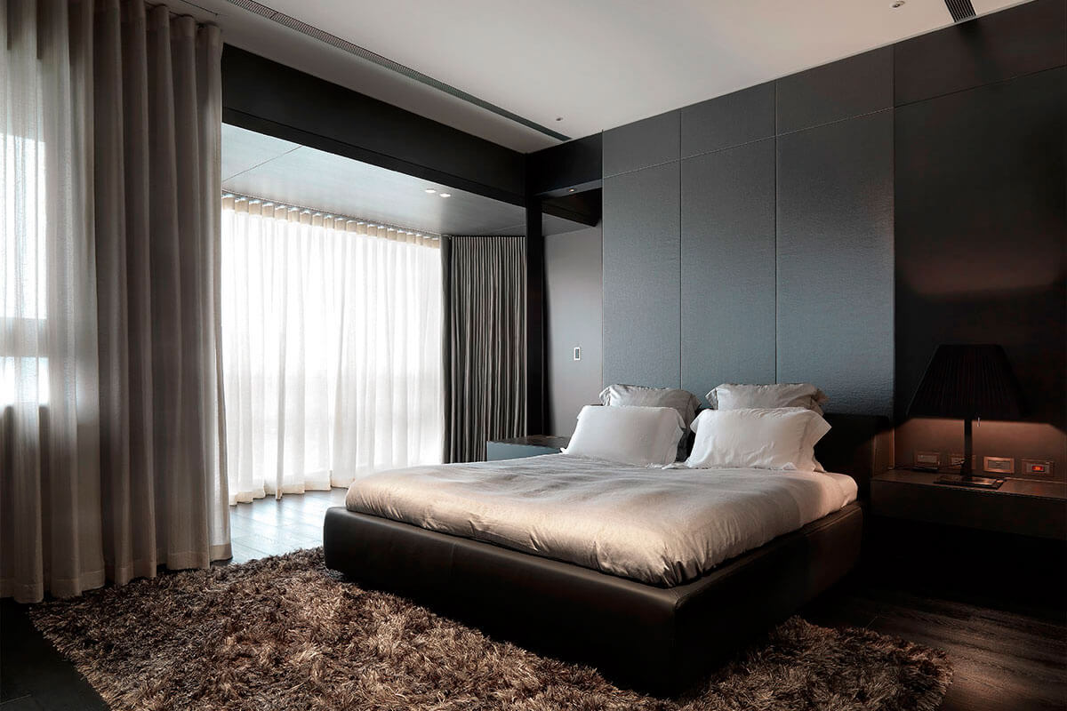 La chambre, conçue dans la conception de technologies innovantes, règne lignes claires, cohérence et retenue.