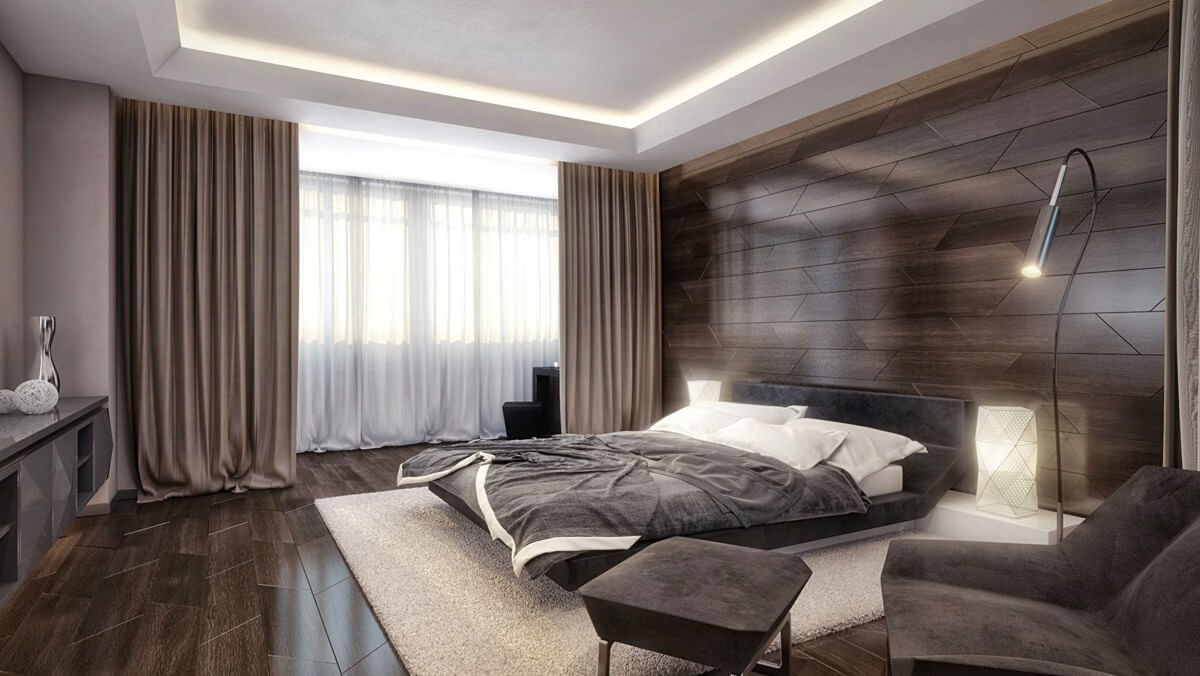 Surtout la question de l'éclairage doit être envisagée avec une palette de finitions sombres, et si la pièce "regarde" à l'ouest ou au nord. De plus, grâce à la disposition correcte des luminaires, vous pouvez visuellement augmenter les paramètres modestes de la pièce. Et de petites appliques placées près du lit aideront à créer une atmosphère calme avant de se coucher.