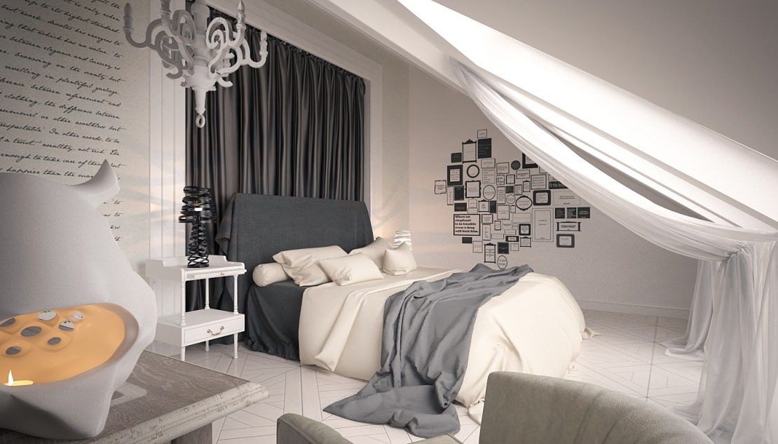Caractéristiques de conception du grenier sous une chambre confortable: l'unicité de la pièce