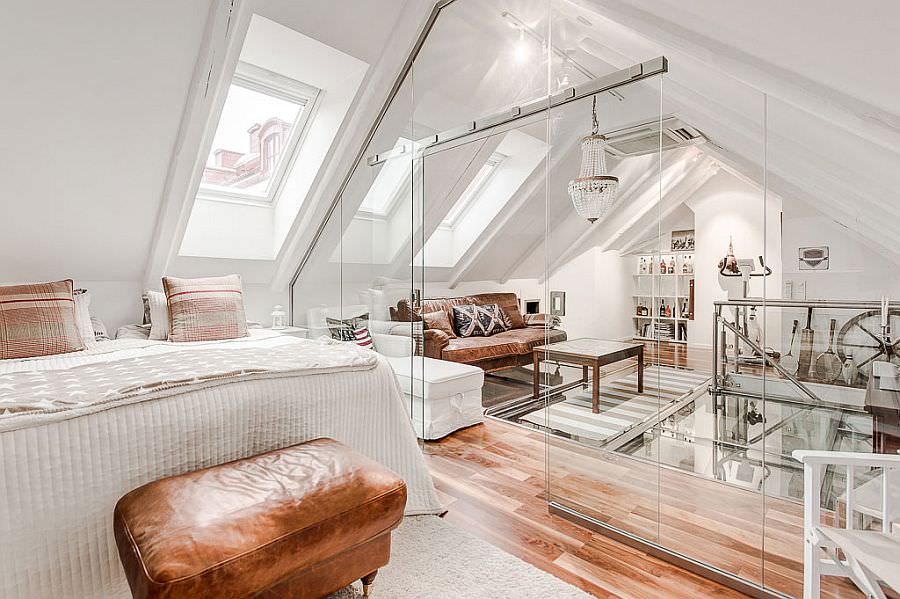 - Caractéristiques de conception du grenier sous une chambre confortable: l'unicité de la pièce