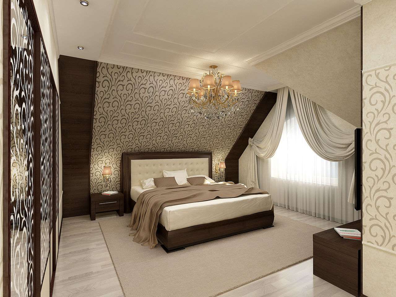 Chambre mansardée: intérieur de style classique