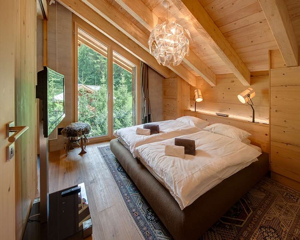 Vous pouvez compléter cette conception du chalet avec des peintures d'artistes contemporains ou des objets insolites. Cette conception convient mieux à ceux qui aiment passer du temps seuls et ne se concentrent pas sur les détails.