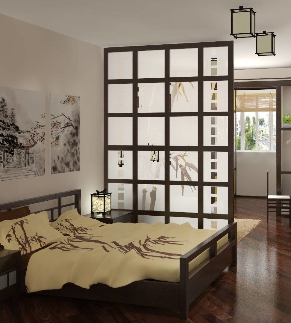 Pour la décoration de la chambre à coucher dans le style japonais, des peintures murales avec l'image d'un sakura en fleurs conviennent, et pour la décoration de fenêtres - rideaux en bambou