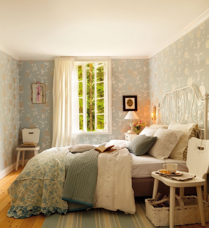 Dans une petite pièce, il est préférable de choisir un lit sur une structure en métal - le style rustique permet un tel remplacement