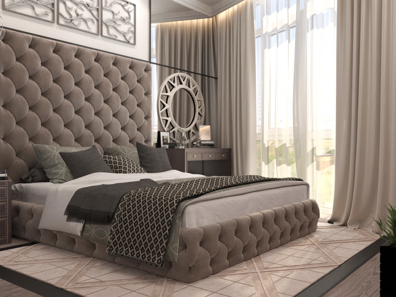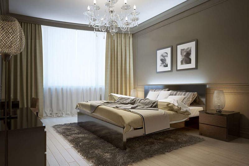 Une belle chambre beige offrira aux propriétaires un repos vraiment de haute qualité et complet.