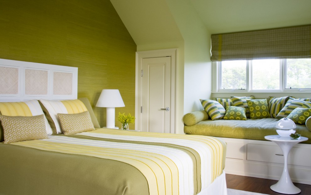 Dans le sens écologique, vous devez respecter le schéma de couleurs naturelles, et donc une chambre dans des tons de sable en combinaison avec du marron et du vert clair sera la meilleure solution.