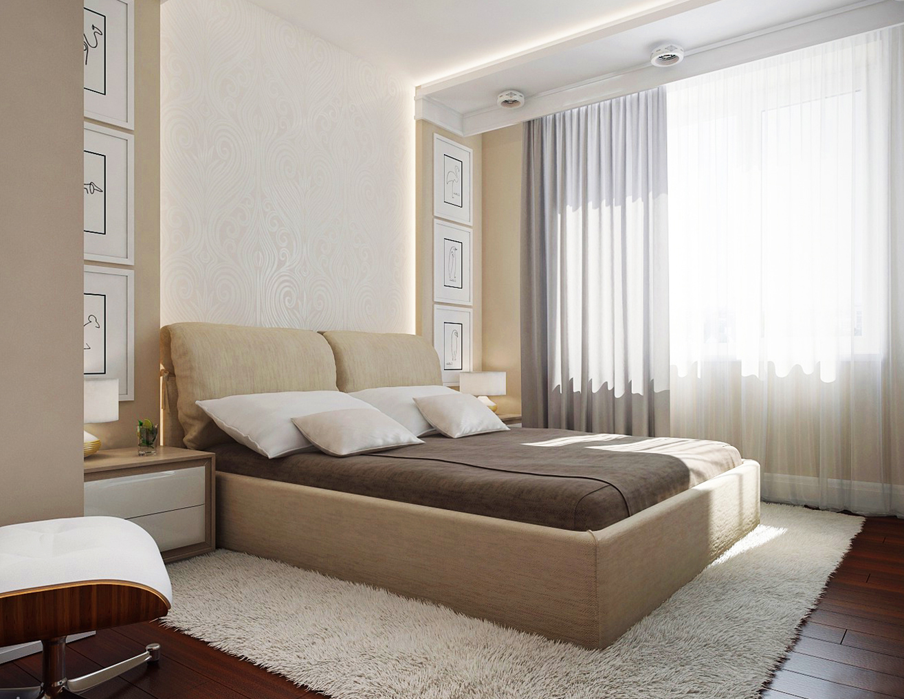 - Options de design pour la chambre dans des couleurs beiges