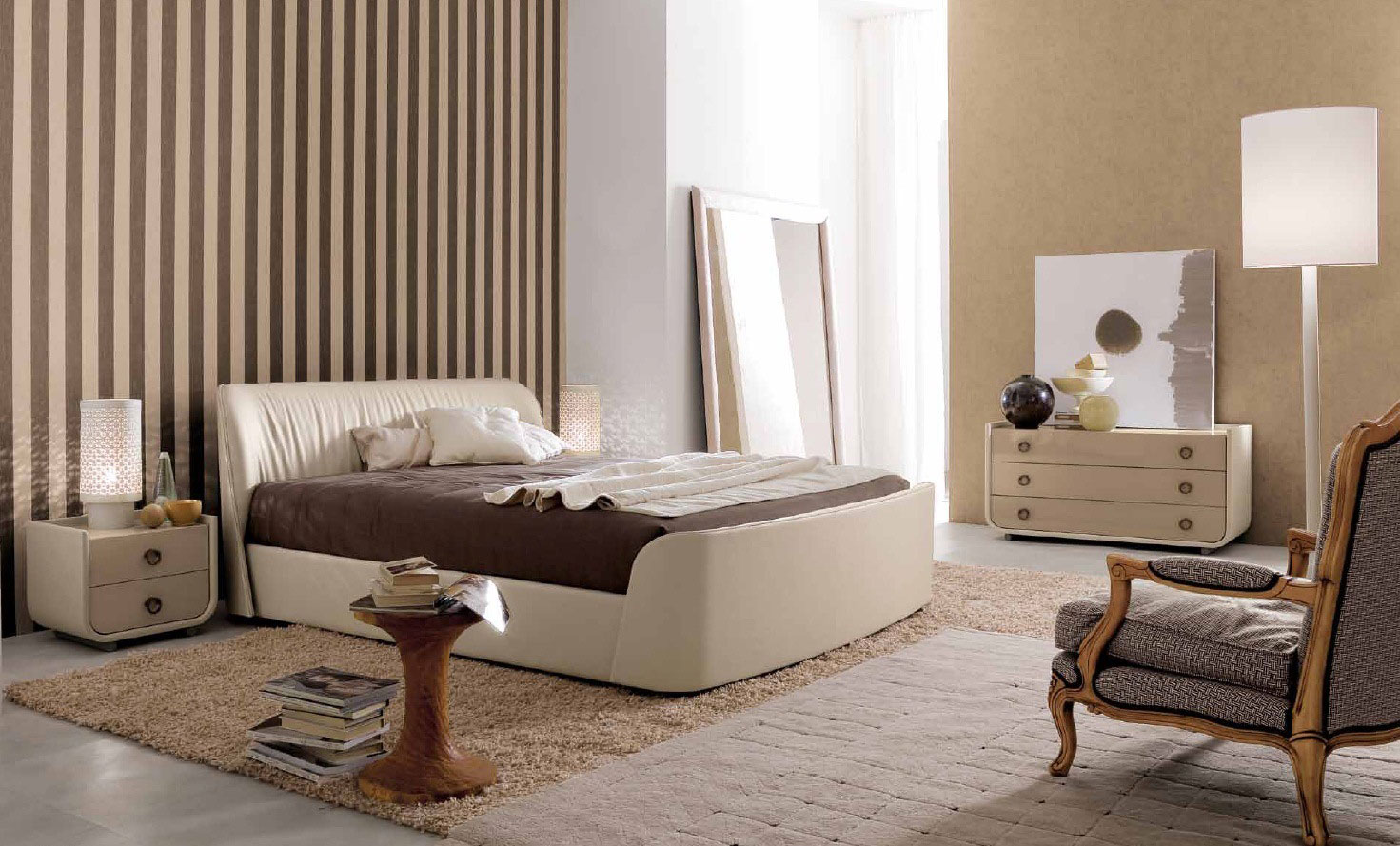 Options de design pour la chambre dans des couleurs beiges