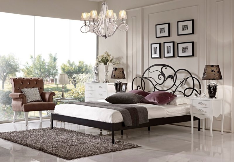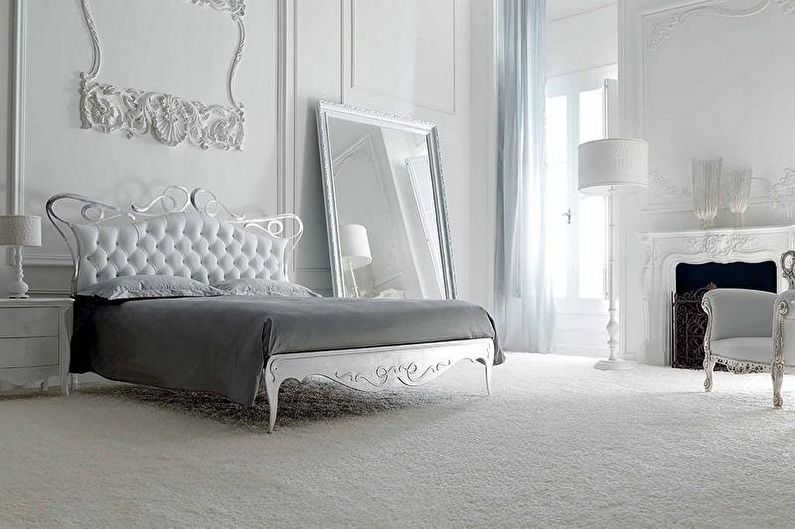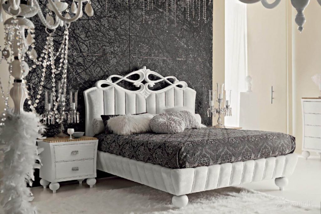 Important! Dans la chambre, l'un des éléments principaux est le lit. Dans la conception art déco, elle doit être tapissée de tissu ou fabriquée dans un style chic avec des sculptures, des jambes incurvées et d'autres détails formant le style.