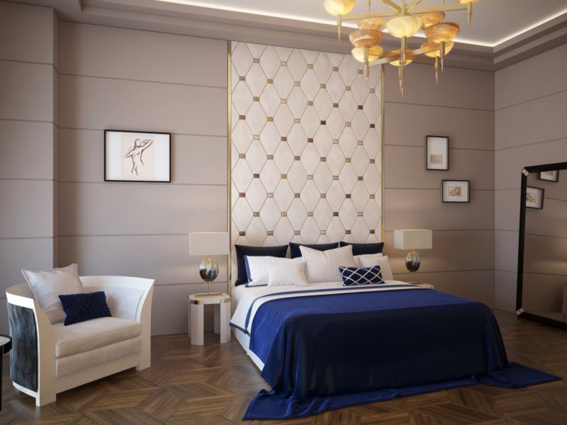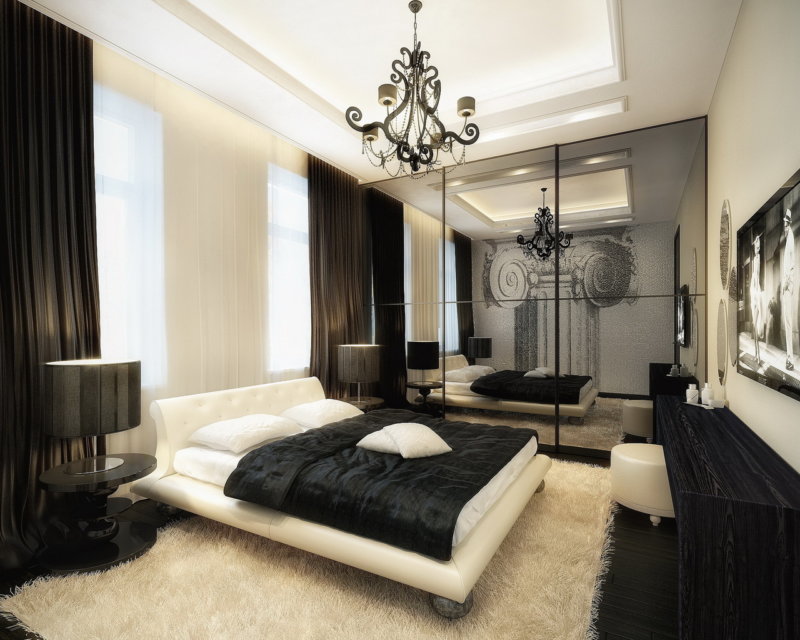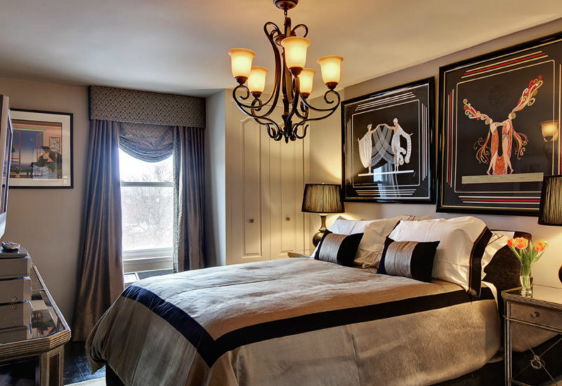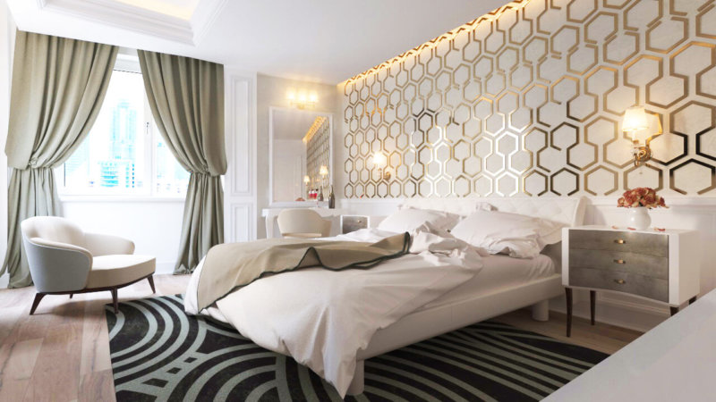 Il est possible de recréer l'esthétique d'une direction dans presque toutes les pièces.Les chambres modernes dans le style Art déco peuvent être saturées et contrastées en couleurs ou réalisées en beige monochrome ou design clair.