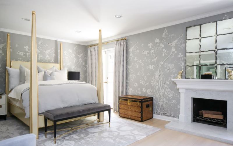 Un style qui se distingue par le luxe implique l'utilisation de matériaux naturels: bois, pierre, verre. Lors du choix du papier peint pour la chambre, il est important de prêter attention aux options texturées complexes avec relief, gaufrage, motifs, éclaboussures brillantes.
