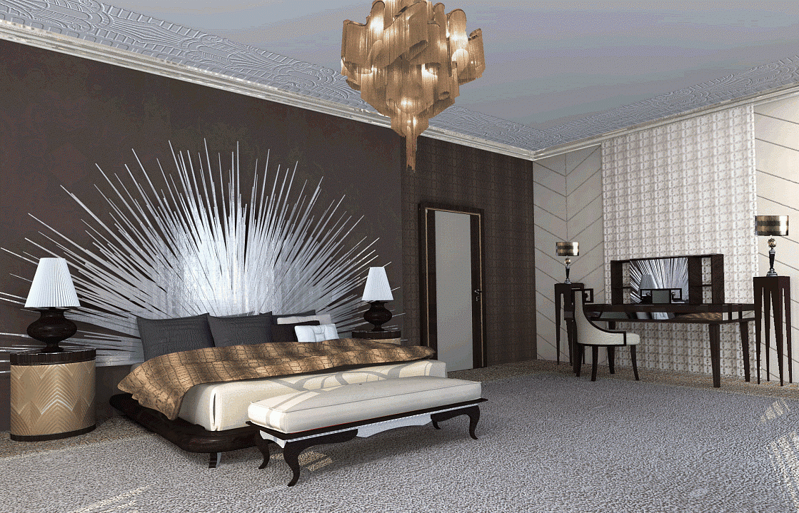 Lors de la conception d'une chambre dans le style Art déco, il est important de maintenir l'équilibre afin de ne pas surcharger l'environnement avec des détails inutiles et de maintenir un sentiment d'harmonie.