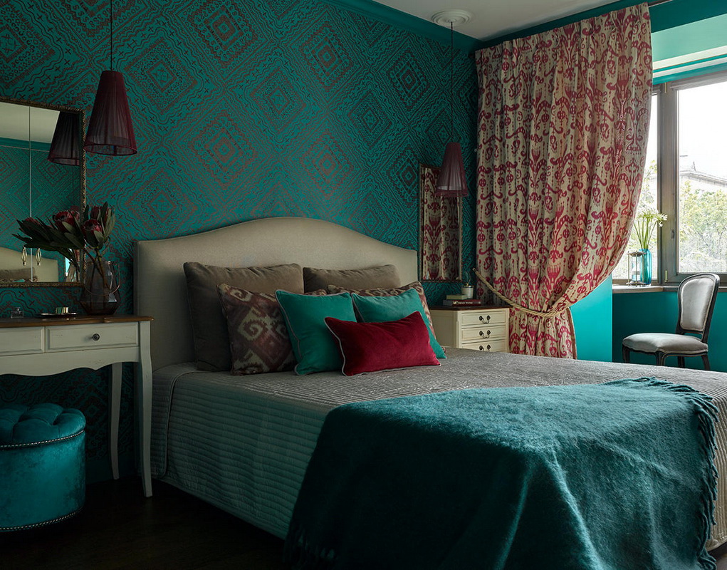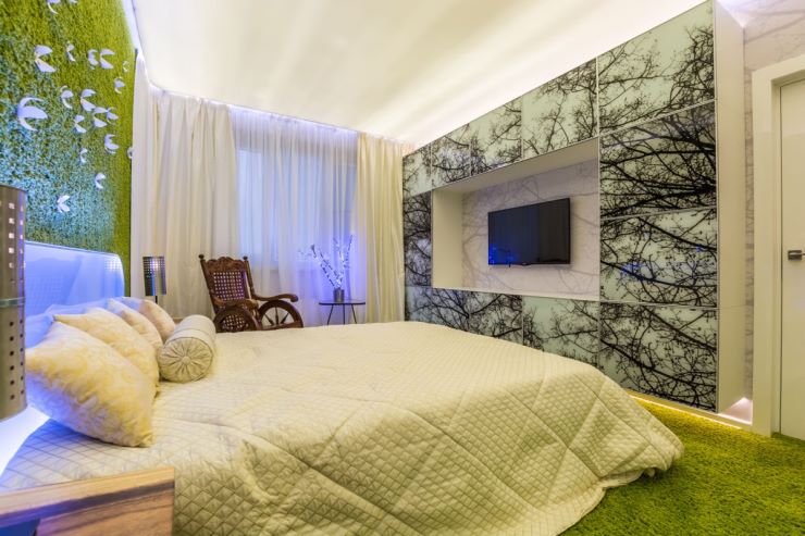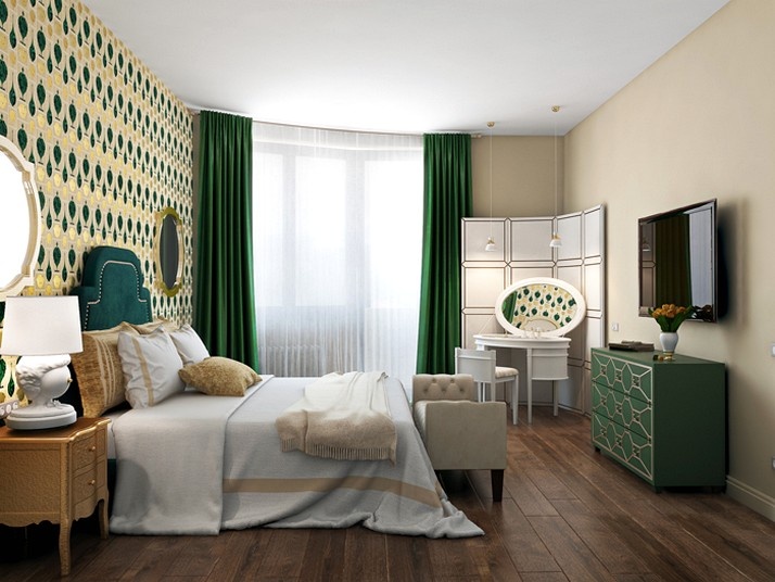 La couleur émeraude est associée à l'herbe verte luxuriante d'une pelouse bien entretenue ou d'une pelouse d'été, de sorte que le décor de la chambre agit comme un somnifère discret.