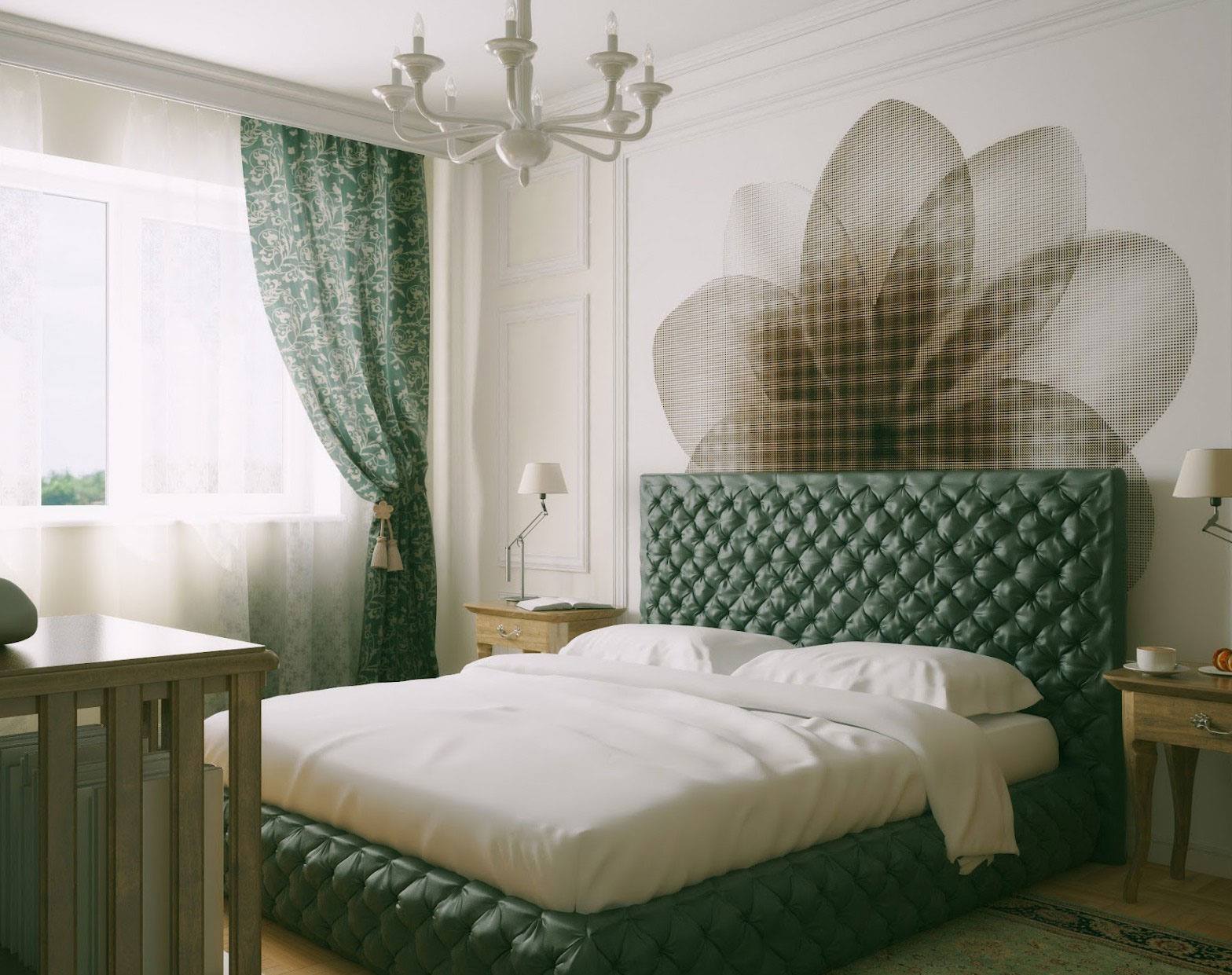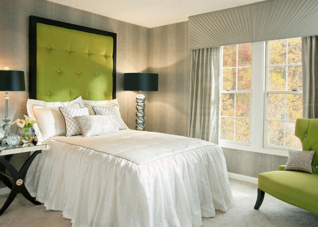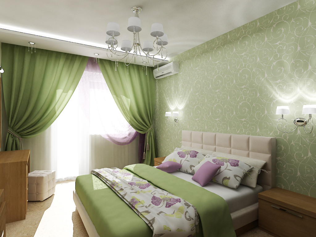 Une chambre aux couleurs vertes est une solution créative. Il est généralement admis que la couleur verte symbolise l'harmonie et la paix. Et les psychologues scientifiques disent que les nuances de vert soulagent le stress accumulé.