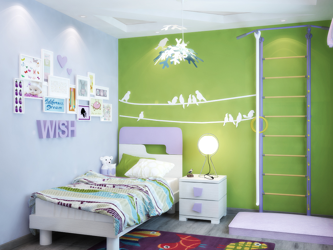 Cette combinaison est la plus réussie dans la conception d'une chambre d'enfant.