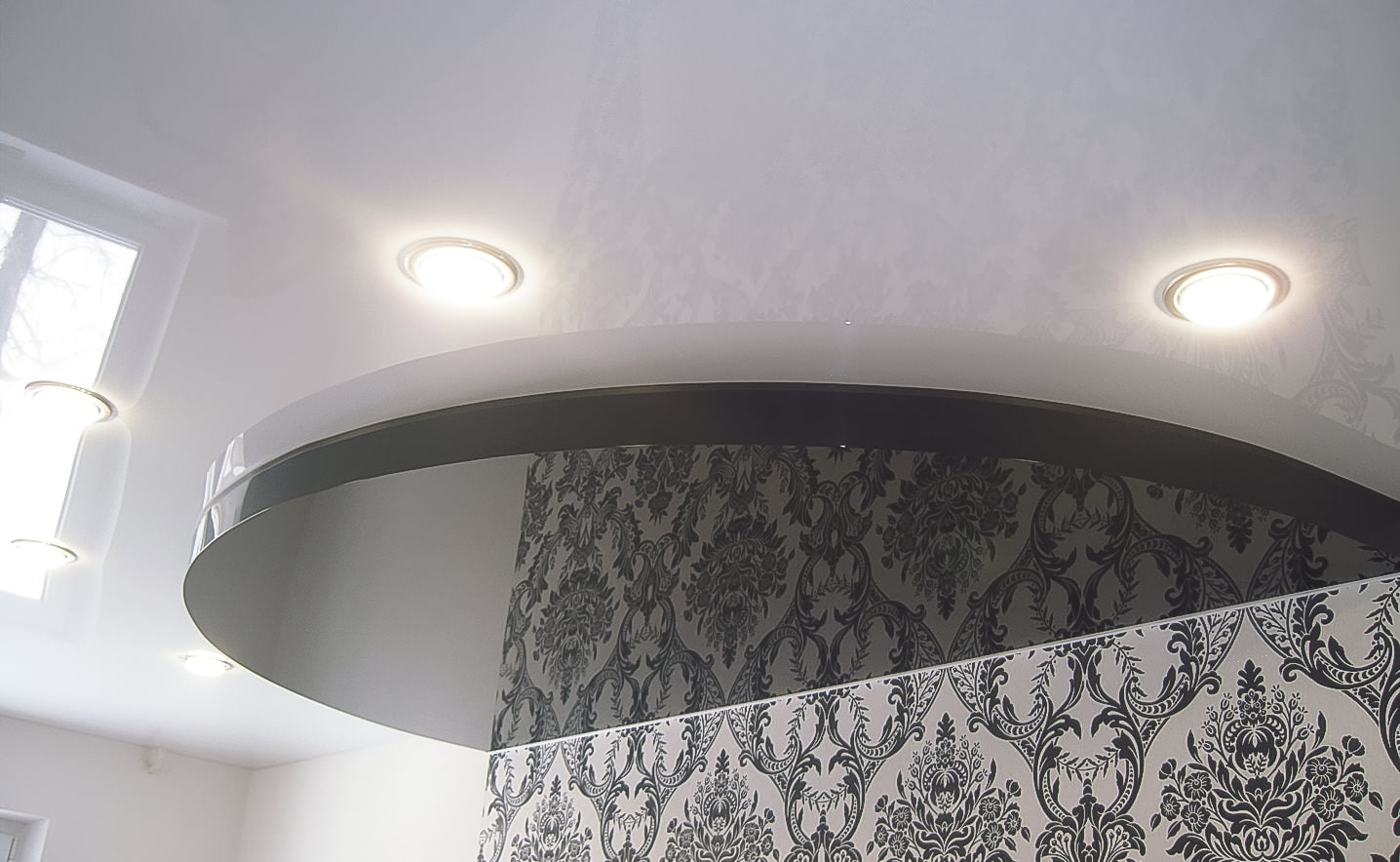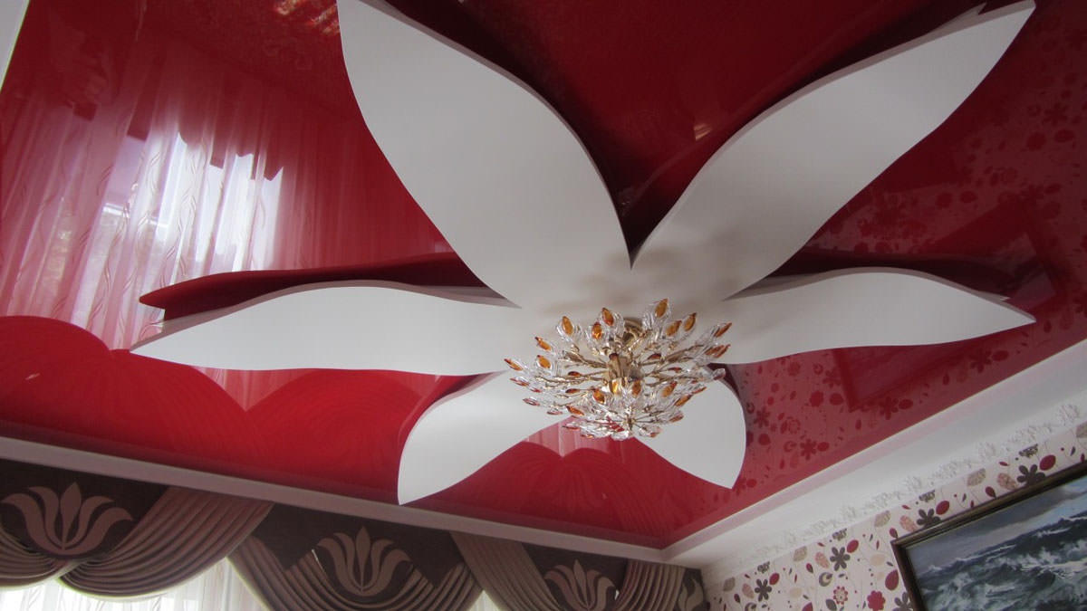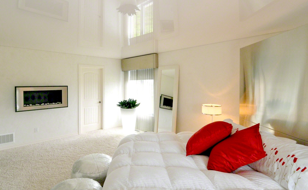 Le plafond tendu brillant de la chambre est parfois appelé laqué - sa surface a un coefficient de réflexion très élevé.